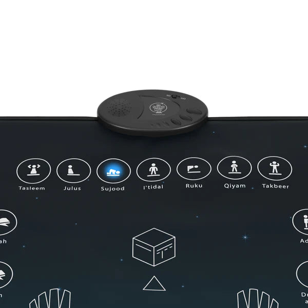 This interactive mat acts as your personal Salah teacher, guiding you through every position, recitation, and movement — so you can focus entirely on your intention and heart.